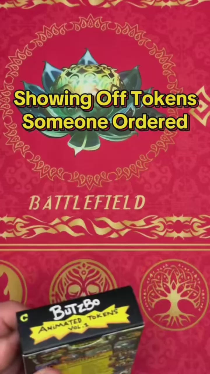 A pack of 32 Magic The Gathering tokens featuring the adorable artwork of Butzbo! Each token has an 8-frame lenticular animation that animates when tilted up & down! Tokens measure 2.5" x 3.5" and can be sleeved.
